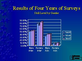 The skill level by gender reflect a significant difference each year in how males and females perceive their computing skill level.